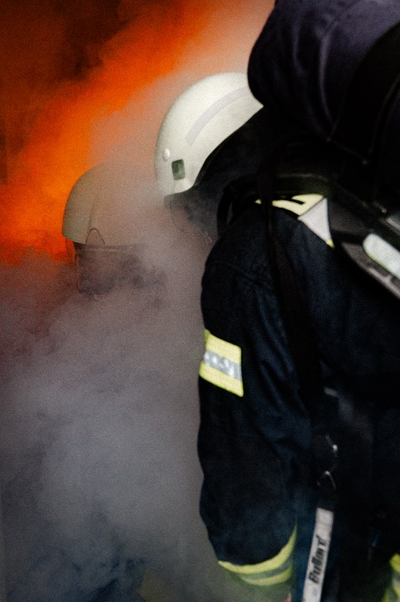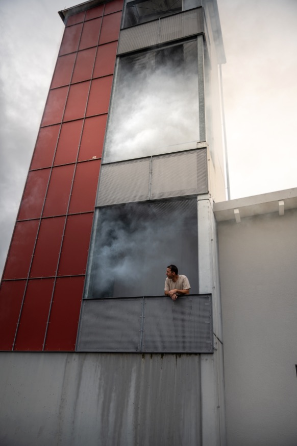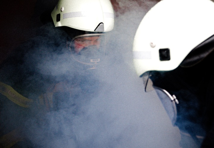 eine realistische Rettungsübung im Übungsturm des Rettungszentrums, inklusive Rauch und Personenrettung,