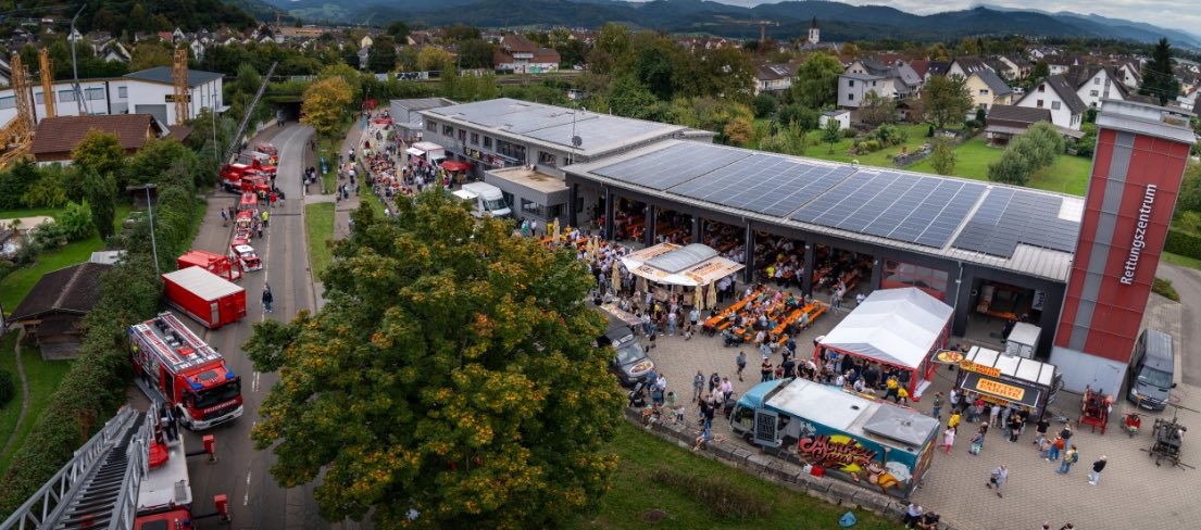 Wenige Minuten später war ich im Korb der Drehleiter, hoch über Denzlingen, mit einem Blick auf das Jubiläum, der alles gleichzeitig zeigte: Geschichte, Gemeinschaft, Einsatzkultur. Die Bilder aus dieser Perspektive sind bis heute meine persönlichen Favoriten.